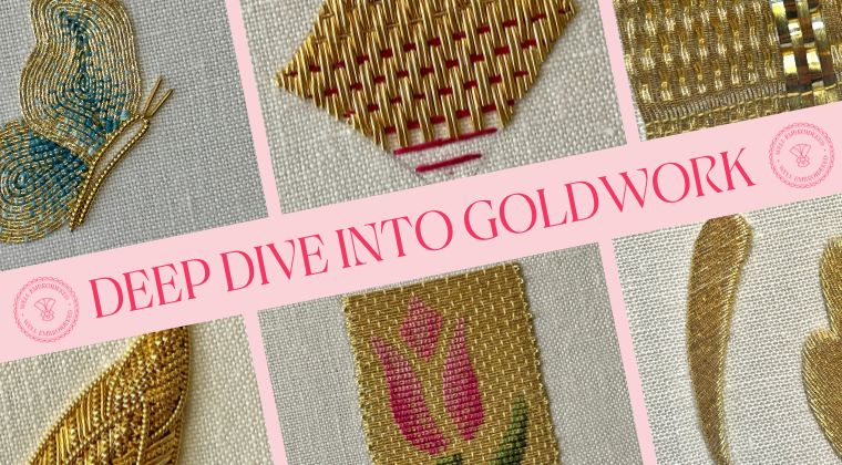 “I’m so happy that I took the plunge (no pun intended) and signed up for the Deep Dive into Goldwork. Sara is an amazing tutor and has thought of everything to make this an enjoyable and achievable course. I would highly recommend Sara and her fabulous course without hesitation.”