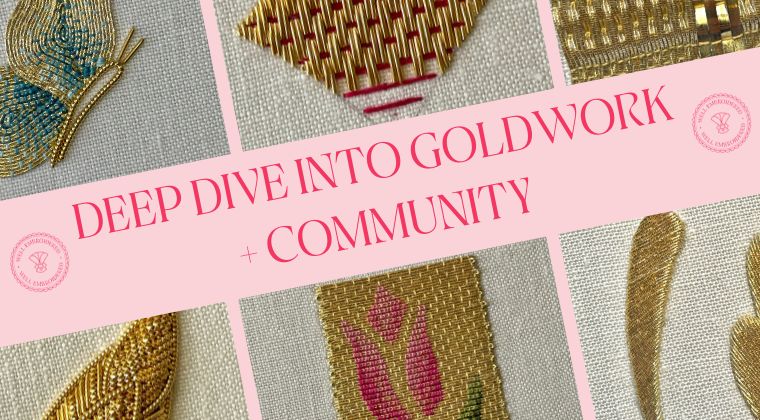 The Deep Dive Into Goldwork - Levels 1, 2 and 3 + Community includes access to the framing up course, transferring the design course and 1 years access to the community where you can ask questions and get feedback on your work